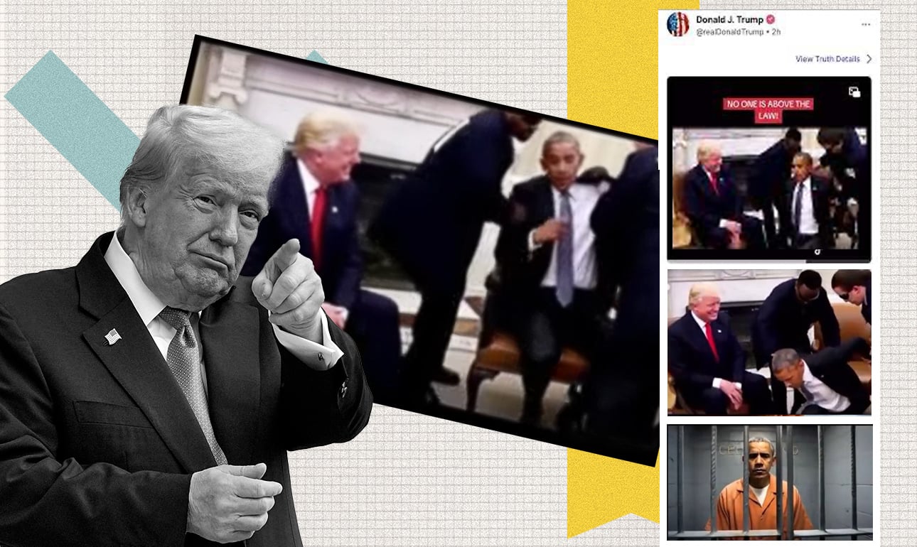Το σύντομο βίντεο, το οποίο φαίνεται να είναι προϊόν Τεχνητής Νοημοσύνης και αναρτήθηκε στο TikTok, πριν αναδημοσιευτεί την περασμένη Κυριακή από τον Τραμπ στο δικό του Truth Social, συμπληρώνει μια σειρά από αναφορές της κυβέρνησης Τραμπ μέσω των οποίων επιδιώκεται να υπονομευτεί η θεωρία ότι η Ρωσία ευνόησε την εκλογή του το 2016. Το παραποιημένο υλικό προέρχεται από μια συνάντηση του τότε προέδρου Ομπάμα με τον διάδοχό του στον Λευκό Οίκο που πραγματοποιήθηκε τον Νοέμβριο του 2016, λίγες ημέρες μετά από την εκλογική νίκη του Τραμπ εναντίον της Χίλαρι Κλίντον.