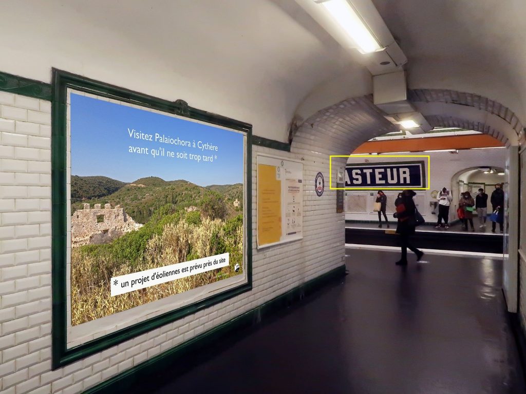 Φωτογραφίες δείχνουν ότι αναρτήθηκαν αφίσες στο μετρό του Παρισιού με φωτογραφίες από Άγραφα, Κύθηρα, Αστυπάλαια και Σκύρο, στέλνοντας μήνυμα για την προστασία τους από τα αιολικά πάρκα στη γαλλική γλώσσα.
