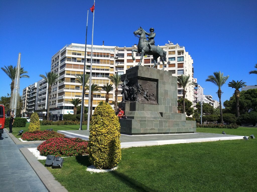 Στο κέντρο της πλατείας ένα ρολόι και φυσικά το άγαλμα του Κεμάλ, που το συναντάς όπου σταθείς και όπου βρεθείς και μονίμως κοιτάζει δυτικά.