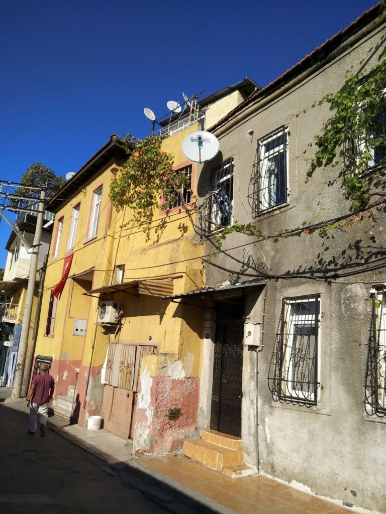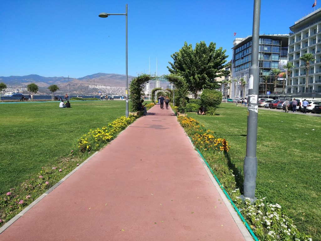 Εικόνα τρίτη…Περιδιαβαίνοντας το παραλιακό μέτωπο που έχει επεκταθεί προς την θάλασσα δημιουργώντας ένα ιδιαίτερα μεγάλο παραλιακό μέτωπο, τελείως διαφορετικό από αυτό που υπήρχε έως το 1922. Συναντάς πολλά υψηλά κτίρια ανάμεσα στα οποία ξεχωρίζει ένα οίκημα που διατηρείται από την εποχή της παρουσίας του ελληνισμού, που στεγάζεται το Ελληνικό Προξενείο της Σμύρνης.