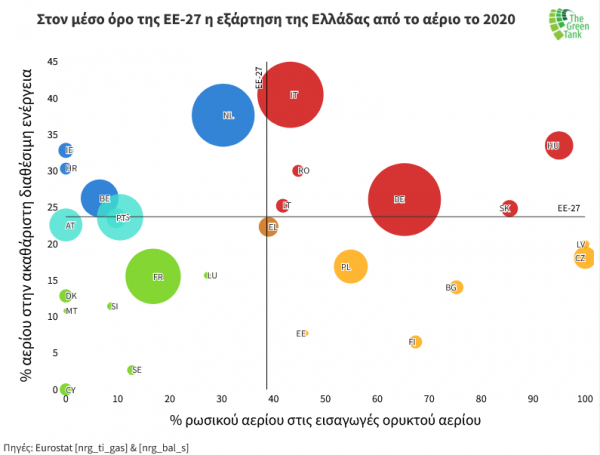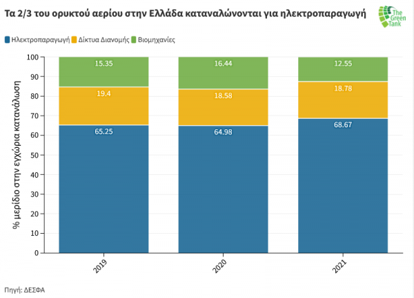 Η δραστική αύξηση της χρήσης του ορυκτού αερίου στην Ελλάδα τα τελευταία χρόνια, κατέστησαν τη χώρα πιο ευάλωτη στην κρίση ενεργειακών τιμών, η οποία μαίνεται από το δεύτερο μισό του 2021 και επιδεινώθηκε μετά την έναρξη του πολέμου της Ρωσίας στην Ουκρανία. Ωστόσο το γεγονός ότι το μεγαλύτερο μερίδιο του εισαγόμενου ορυκτού αερίου χρησιμοποιείται στην ηλεκτροπαραγωγή, προσφέρει στη χώρα περισσότερες δυνατότητες για ευκολότερη απεξάρτηση από τις εισαγωγές ρωσικού ορυκτού αερίου, συγκριτικά με άλλα κράτη μέλη της ΕΕ-27.