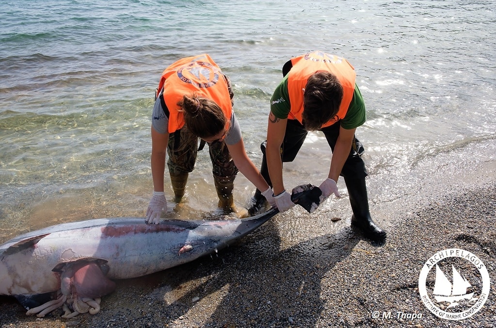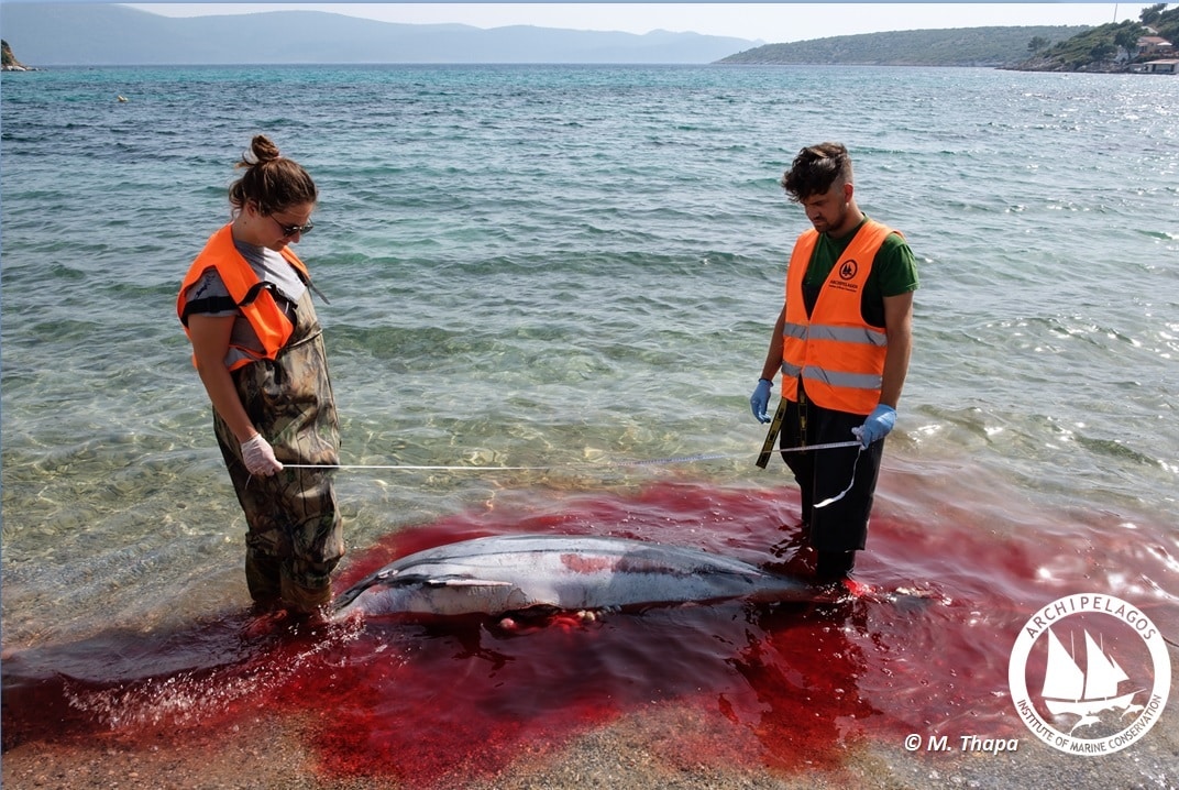 Ακόμα μία νεαρή φώκια εντοπίστηκε νεκρή στα βόρεια Δωδεκάνησα, με ένα σχοινί δεμένο στο ουραίο πτερύγιό της, ενώ 3 νεκρά ζωνοδέλφινα εντοπίστηκαν σε 3 περιοχές του ΒΑ Αιγαίου και αυτά με εμφανή σημάδια δολοφονίας. Αξιοσημείωτο είναι ότι τα πτερύγια των δελφινιών είχαν κοπεί με μαχαίρι – δηλαδή είχαν πεταχτεί στη θάλασσα ζωντανά για να πνιγούν. Προσπαθώντας να προσδιορίσουμε ποιός θα μπορούσε να έχει διαπράξει αυτό το έγκλημα, μελετήσαμε τα θαλάσσια ρεύματα που επικρατούσαν στην περιοχή τις ημέρες πριν από τον εντοπισμό τους. Τα νεκρά ζωνοδέλφινα προέρχονται από μία πολυμελή ομάδα την οποία μελετάμε εδώ και 20 χρόνια στη θαλάσσια περιοχή ανάμεσα στην Ικαρία, τη Χίο και τη Σάμο, τα οποία παραμένουν καθ’ όλη τη διάρκεια του έτους στο ανοιχτό πέλαγος, σε περιοχές με βαθιά νερά.