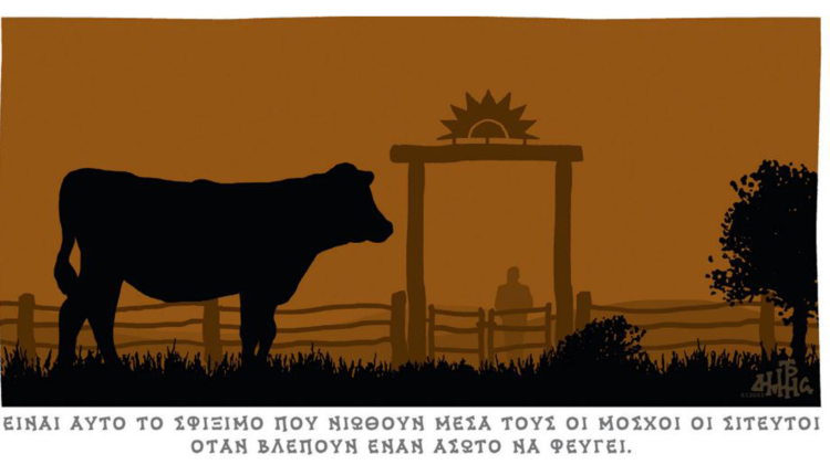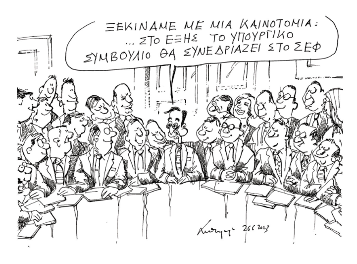 Οι γελοιογράφοι ΧΑΤΖΟΠΟΥΛΟΣ, ΜΑΚΡΗΣ, ΠΕΤΡΟΥΛΑΚΗΣ σχολιάζουν την επικαιρότητα το τελευταίο δίμηνο μέσα από ΚΑΘΗΜΕΡΙΝΗ και PROTAGON