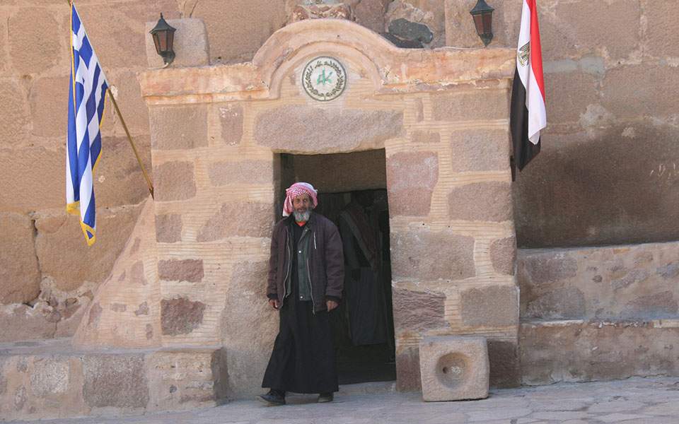 «Θεωρούμε το μοναστήρι δικό μας σπίτι, δεν θα αφήσουμε κανέναν να το πειράξει», μου είπε στην αυλή της μονής ένας εικοσάχρονος βεδουίνος, ο Ραμαντάν, που υποστήριξε με καμάρι ότι η φυλή του Γκεμπελία έλκει την καταγωγή της από τον Πόντο, απ’ όπου έφερε στο Σινά Βυζαντινούς στρατιώτες ο Ιουστινιανός για να φυλάσσουν τα σύνορα της αυτοκρατορίας στην αραβική χερσόνησο.