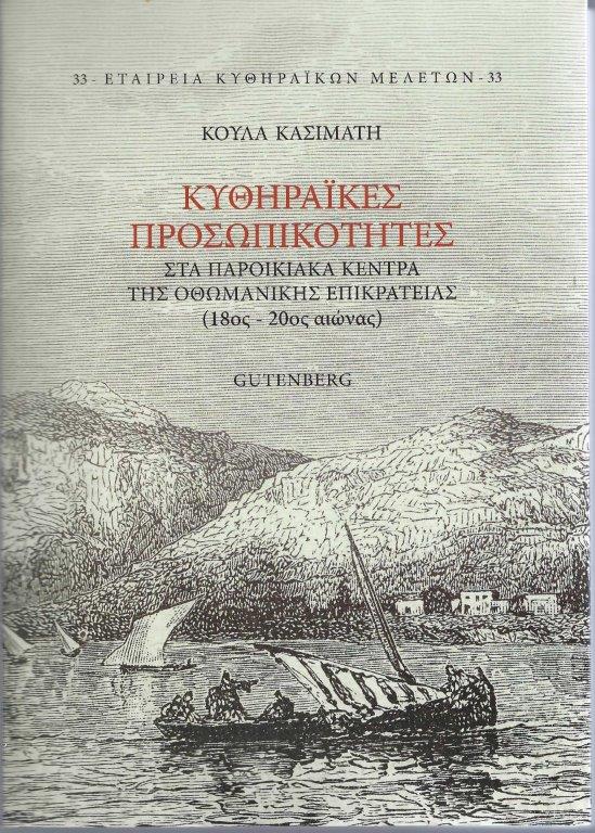 Eκδόθηκε το βιβλίο της Oμότιμης Kαθηγήτριας του Παντείου Πανεπιστημίου κυρίας Κούλας Κασιμάτη με τίτλο Κυθηραϊκές προσωπικότητες στα παροικιακά κέντρα της Οθωμανικής επικράτειας (18ος-20ός αι.), με αύξοντα αριθμό 33.