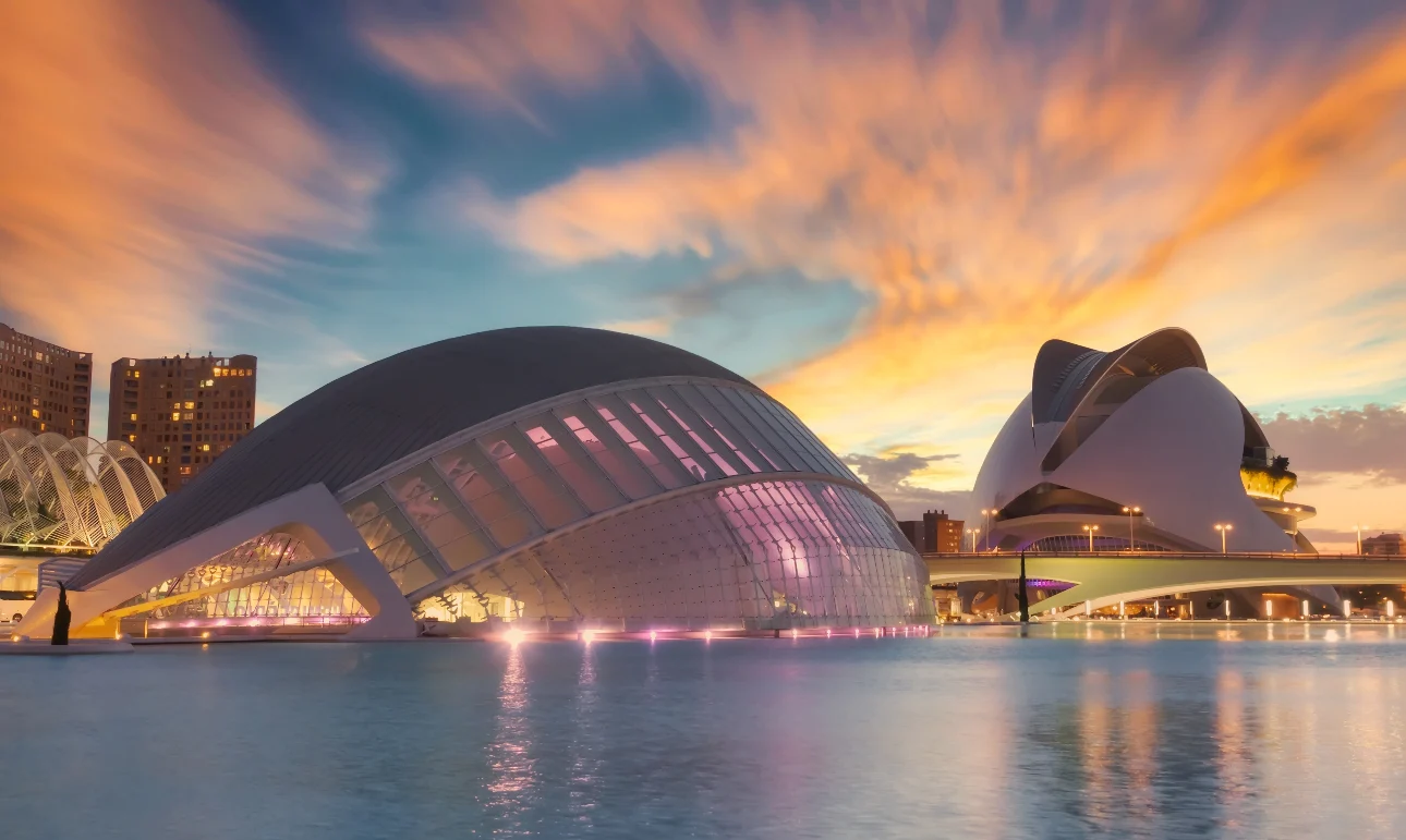 Οταν ο Σαντιάγο Καλατράβα επέστρεψε στη Βαλένθια της Ισπανίας για να εγκαινιάσει την Πόλη των Τεχνών και των Επιστημών, ένα πολιτιστικό συγκρότημα μεταμφιεσμένο σε «στολίσκο εξωγήινων διαστημοπλοίων», τον υποδέχθηκαν με κάποιον σκεπτικισμό. Το κυριότερο από αυτά τα κτίρια, το «Μέγαρο Τεχνών Βασίλισσα Σοφία», είναι η ψηλότερη όπερα στον κόσμο, καθώς υψώνεται μέσα από μια λίμνη νερού σε ύψος 75 μέτρων. Στο εσωτερικό του υπάρχουν τέσσερις αίθουσες για όπερα, μουσική, μπαλέτο και θέατρο, με την καθεμία να συνδέεται με έναν καταπράσινο μεσογειακό κήπο μέσω πληθώρας διαδρόμων.