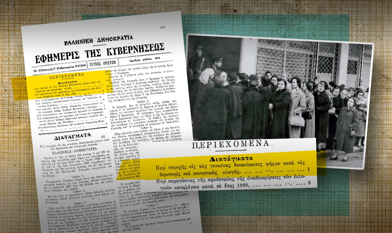 Είναι ενδεικτικό ότι ελάχιστες ήταν οι γυναίκες που γράφτηκαν στους εκλογικούς καταλόγους στις αρχές της δεκαετίας του 1930, όταν, έπειτα από πολύ κόπο και πολλά χρόνια, τους παραχωρήθηκε –υπό όρους– το δικαίωμα να ψηφίζουν στις δημοτικές εκλογές. Δόθηκε δηλαδή το δικαίωμα ψήφου στις εγγράμματες γυναίκες άνω των 30 ετών. Στα τέλη του 1931, από 3.128.449 Ελληνίδες, μόνο 301.772 δικαιούντο να ψηφίσουν. Εξ αυτών, μόλις οι 6.768 γράφτηκαν στους εκλογικούς καταλόγους. Τα νούμερα μιλούν από μόνα τους.