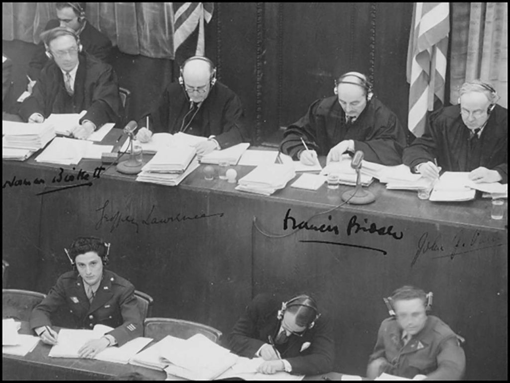 Ο Τζορτζ Σακχάιμ (κάτω, αριστερά) στη Δίκη της Νυρεμβέργης