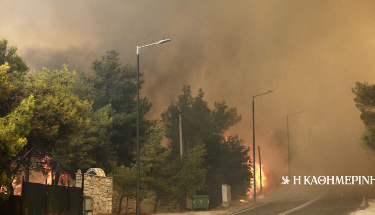 Η φωτιά επεκτάθηκε προς τα νότια και έκαιγε σε τρία μέτωπα, στο Γραμματικό, τον Μαραθώνα και τη Νέα Μάκρη, καθώς και στο Πεντελικό Ορος. Η φωτιά επεκτάθηκε επίσης στις περιοχές Σταμάτα, Ροδόπολη και Διόνυσος. Λίγες ώρες μετά, πέρασε στον αστικό ιστό της Αθήνας και στην περιοχή των Βριλησσίων, ενώ επεκτάθηκε μέχρι και την περιοχή Πάτημα Χαλανδρίου καταστρέφοντας οικίες, επιχειρήσεις και δασικές εκτάσεις. Το μήκος των μετώπων έφτασε τα 23 χιλιόμετρα, σύμφωνα με την υπηρεσία Copernicus.