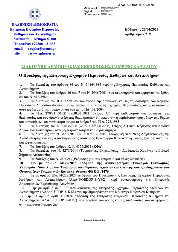 - ΟΡΘΗ ΕΠΑΝΑΛΗΨΗ ΔΙΑΚΗΡΥΞΗΣ ΔΗΜΟΠΡΑΣΙΑΣ ΚΑΜΠΙΝΓΚ ΚΑΨΑΛΙΟΥ