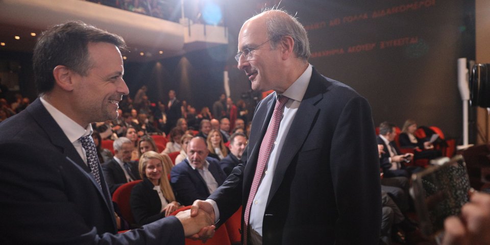 Χειραψία του Γιώργου Γεραπετρίτη με τον Κυριάκου Μητσοτάκη