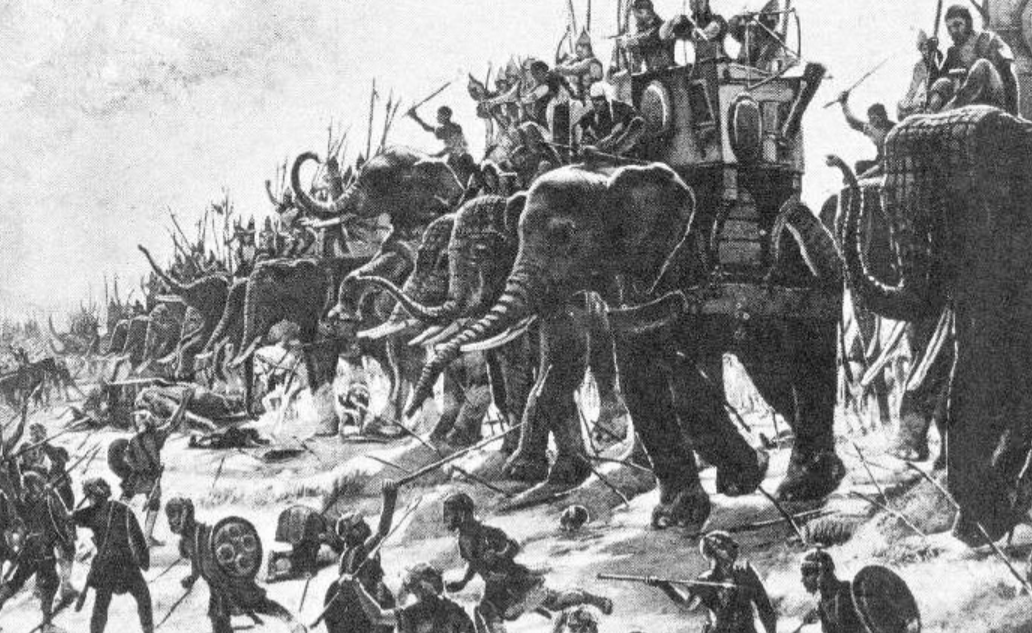 Η τακτική αναφέρεται πρώτη φορά από τον Λουκρήτιο (1ος αιώνας π.Χ.), που υποθέτει πως παλιότερα οι άνθρωποι προσπάθησαν να χρησιμοποιήσουν ζώα όπως λιοντάρια ή αγριογούρουνα πετώντας τα στον εχθρό, με ολέθρια αποτελέσματα. Ο Ψευδο-Καλλισθένης αναφέρει πως ο Μεγαλέξαντρος έμαθε την τεχνική από τον Πώρο στην Ινδία.