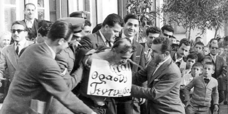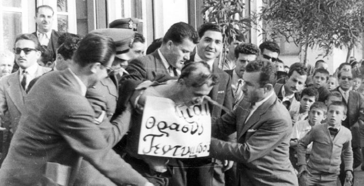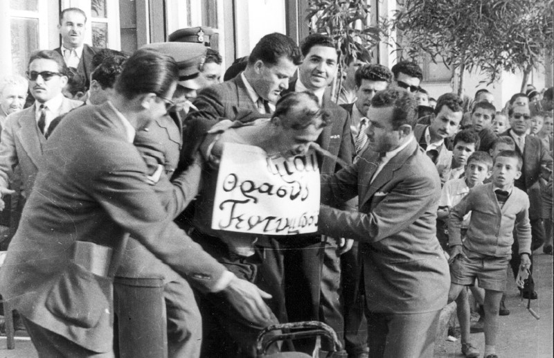 Σε μία σπάνια φωτογραφία του 1958, βλέπουμε μια σύλληψη Έλληνα τεντυμπόη. Είναι η ώρα της διαπόμπευσης.