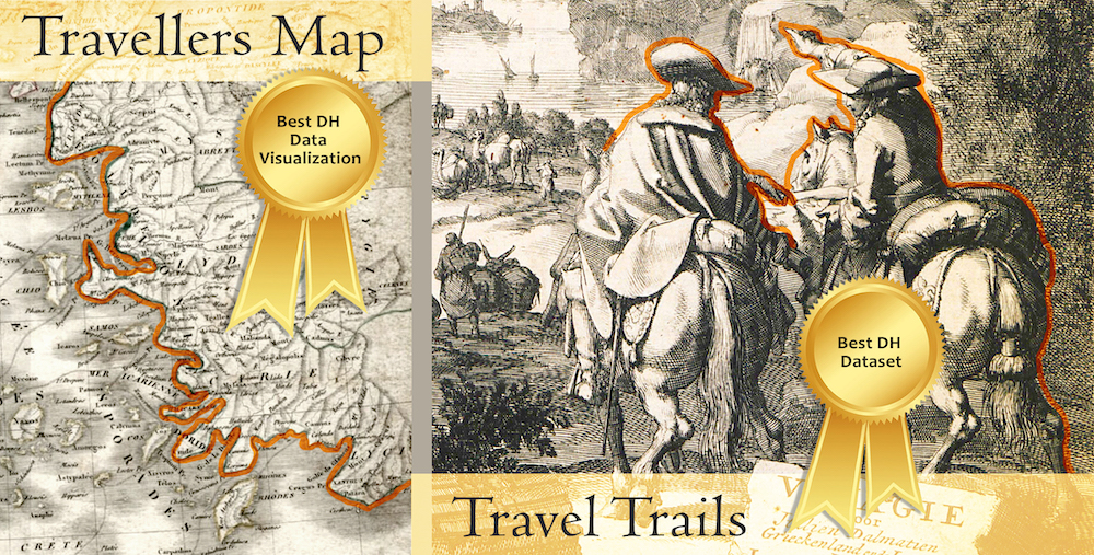 Συγκεκριμένα, ο διαδραστικός χάρτης TravellersMap (travellersmap.gr) αναδείχθηκε η «Καλύτερη Εφαρμογή για την Ανάδειξη Δεδομένων (Best DH Data Visualization)», ενώ το TravelTrails: Αποστολές και Εξερευνήσεις στην ανατολική Μεσόγειο, 1500-1830 (traveltrails.gr), κατέκτησε την πρώτη θέση στην κατηγορία «Καλύτερο Έργο για την Ανάδειξη Πηγών (Best DH Dataset)».