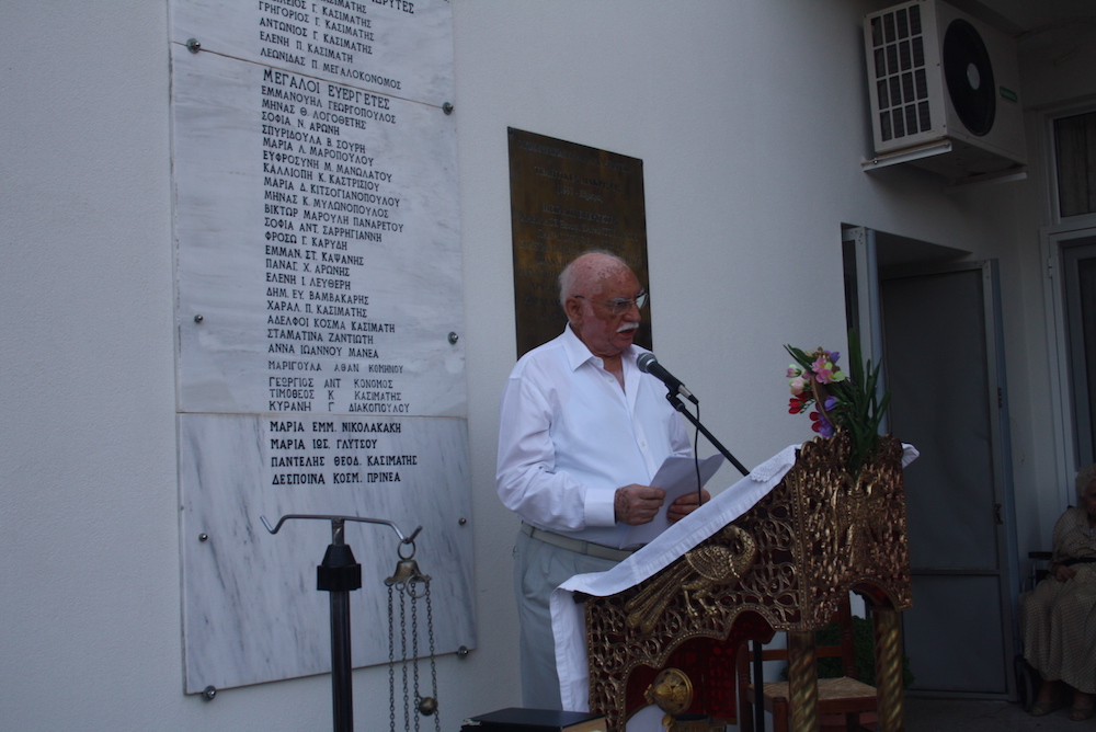 Στην εκδήλωση παρέστη ο εκπρόσωπος του ιδρύματος Παναγία Μυρτιδιώτισσα της Αυστραλίας κ. John Kallinikos, με τις ενέργειες του οποίου εξασφαλίστηκε η κατασκευή της θερμοπρόσοψης.