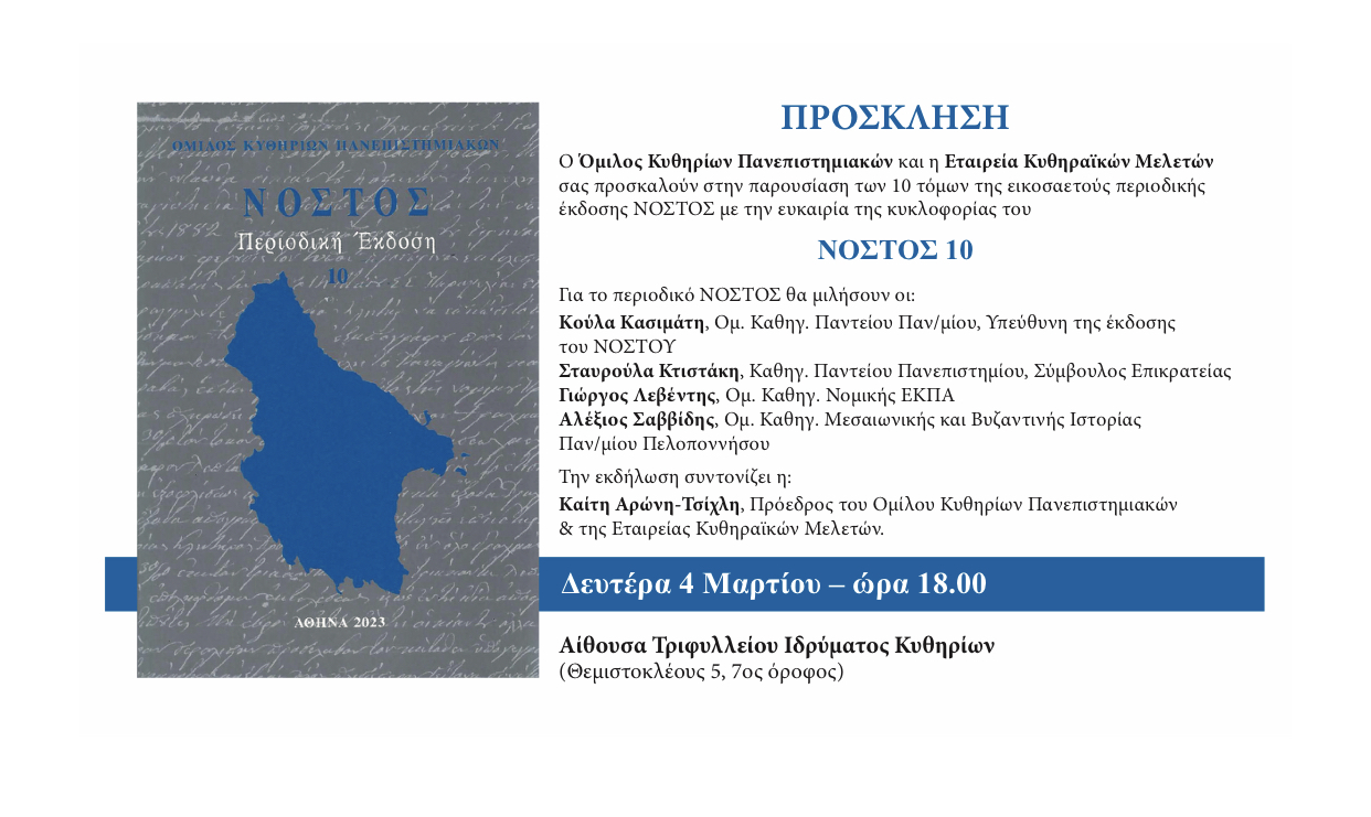 Παρουσίαση των 10 τόμων της εικοσαετούς περιοδικής έκδοσης ΝΟΣΤΟΣ