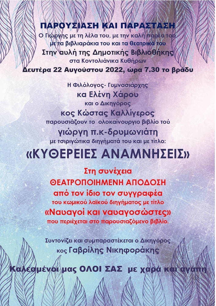 ΚΥΘΗΡΑΪΚΑ ΠΑΡΩΝΥΜΙΑ: Ένα ακόμη βιβλίο του Εμμ. Π. Καλλίγερου