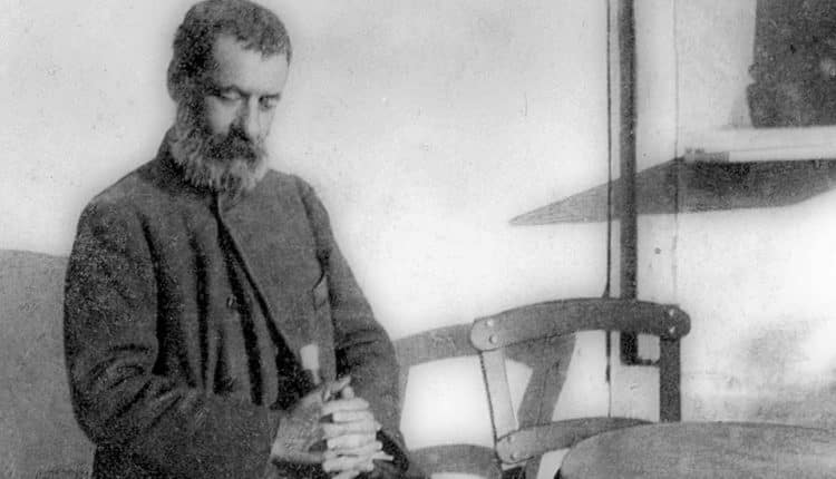 Με τί δόλια και αμαρτωλά μέσα επραγματοποίησα τον άθλο μου αυτό, το διηγήθηκα, όπως είπα, αλλού. Εκείνο που μου θυμίζουν ζωηρότερα τώρα οι ευλαβητικές γιορτές της Σκιάθου, είναι η ανησυχία του τη στιγμή που τον αποτράβηξα ως την προσήλια γωνίτσα του μικρού καφενείου, για να ποζάρει μπροστά στον φακό μου. Να “ποζάρει” είναι ένας λεκτικός τρόπος. Είχε πάρει μόνος του τη φυσική του στάση απάνω σε μια πρόστυχη καρέκλα, με τα χέρια σταυρωμένα στο στήθος, με το κεφάλι σκυφτό, με τα μάτια χαμηλωμένα, στάση βυζαντινού αγίου, σαν ξεσηκωμένη από κάποιο καπνισμένο παλιό τέμπλο ερημοκλησιού του νησιού του. Αυτή δεν ήταν στάση για μια πεζή φωτογραφία. Ήταν μια καλλιτεχνική σύνθεση, και θα μπορούσε να είναι ένα έργο του Πανσελήνου ή του Θεοτοκοπούλου. Αμφιβάλλω αν φωτογραφικός φακός έλαβε ποτέ μια τέτοια ευτυχία…