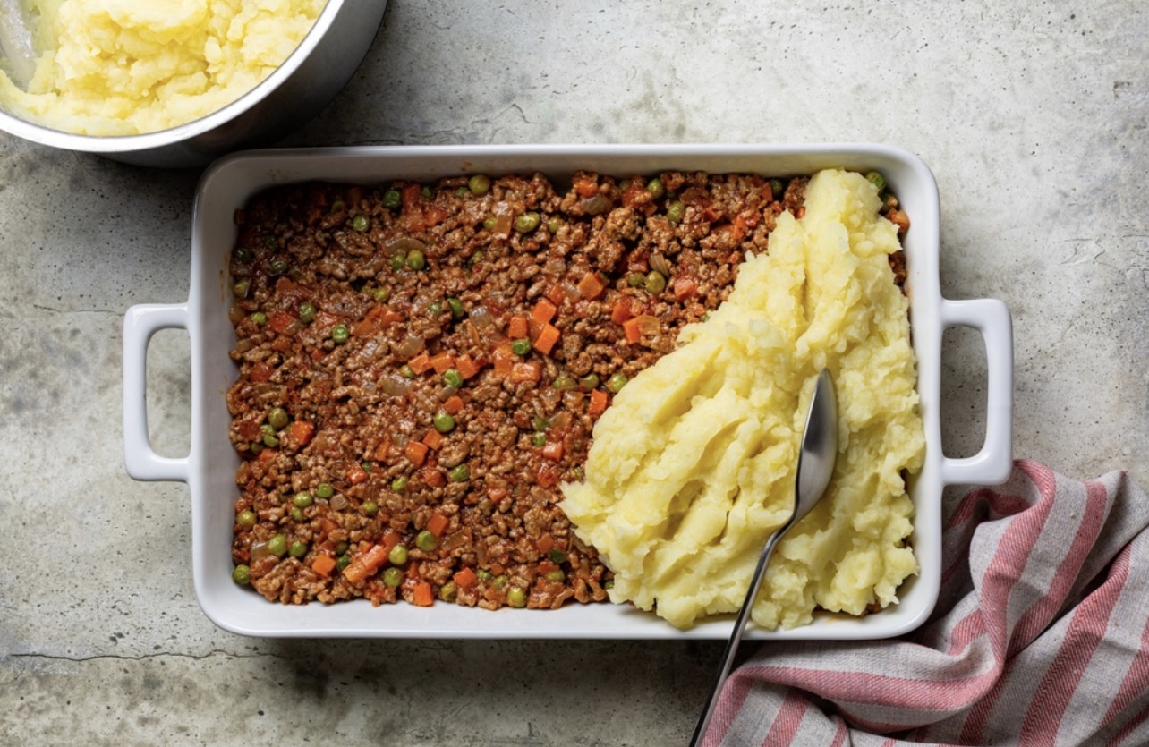 Η βρετανική πίτα του βοσκού, εκτός από κιμά έχει επίσης καρότα και αρακά (Shutterstock)