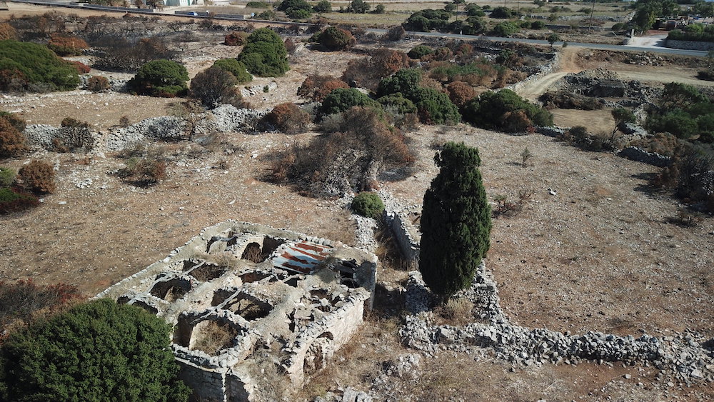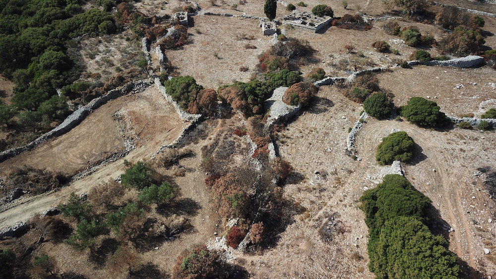 Σήμερα, με τη βοήθεια ενός μικρού φωτογραφικού αεροπλάνου θα περιπλανηθούμε σε ένα μικρό μονοπάτι, που αρχίζει από τον κεντρικό δρόμο κοντά στη διασταύρωση με τα Φράτσια και οδηγεί σε δύο ερειπωμένα αγροκτήματα οι σημερινοί ιδιοκτήτες των οποίων βρίσκονται στην Αυστραλία και, ευτυχώς, είναι από αυτούς που έρχονται τακτικά στο νησί.