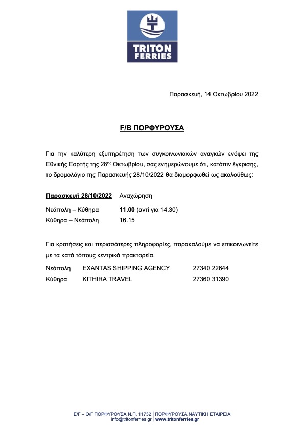 - ΠΟΡΦΥΡΟΥΣΑ | Δελτίο Τύπου (Τροποποίηση 28/10/2022)