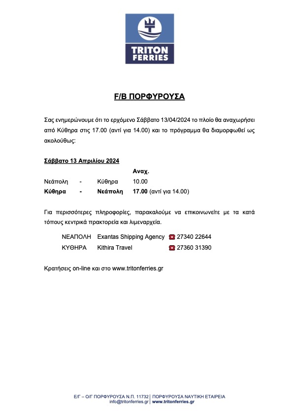- ΠΟΡΦΥΡΟΥΣΑ | Δελτίο Τύπου (Τροποποίηση Σαβ. 13/04/2024)