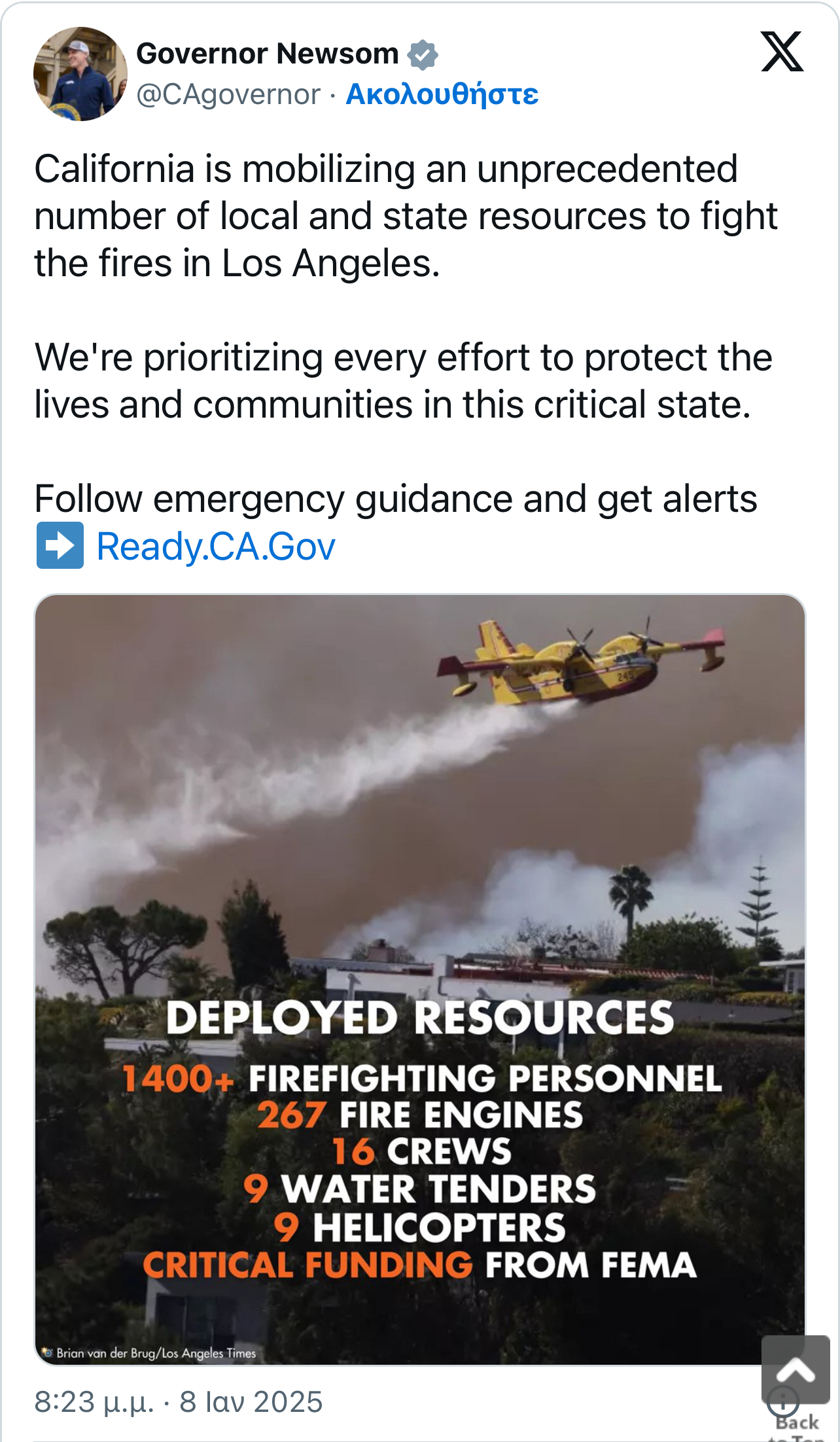 Η ανάρτηση του Γκάβιν Νιούσομ για τα μέσα που κινητοποίησε η Πολιτεία: