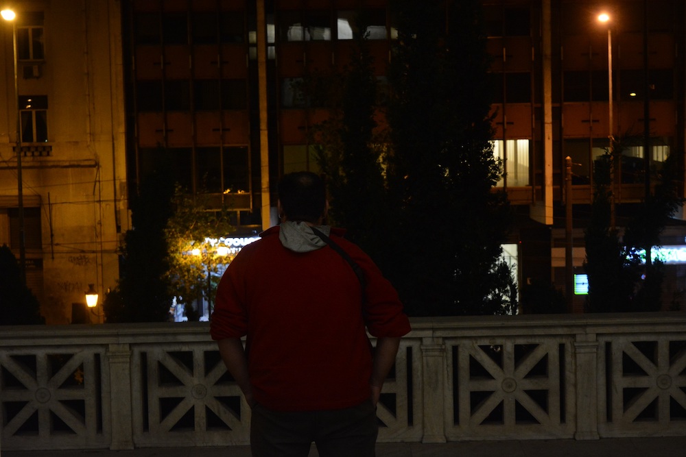 Κοιμάμαι κοντά στο Σύνταγμα για δύο λόγους. Πρώτον είναι αρκετά ασφαλές το μέρος και δεύτερον είμαι παιδί του κέντρου, τα συναισθήματα, οι αναμνήσεις μου είναι στο κέντρο, εγώ είμαι στο κέντρο, εγώ είμαι το κέντρο.