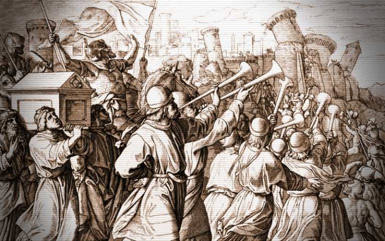 Ενώ οι Ισραηλίτες βάδιζαν τελετουργικά γύρω από την πόλη για έξι ολόκληρες μέρες κι ενώ οι στρατιώτες σιγούσαν και μόνο οι σάλπιγγες αντηχούσαν, οι σκαπανείς έσκαβαν μυστικά τα τείχη της πόλης. Η τελετουργική αυτή στρατιωτική πορεία είχε μοναδικό σκοπό να προσελκύσει την προσοχή των εξαπατημένων κατοίκων της Ιεριχούς.