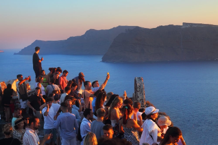 Αυτό αποτυπώθηκε εφέτος στις εικόνες από το μποτιλιάρισμα στο Φυροστεφάνι και στην Οία. Ο τεράστιος αριθμός ανθρώπων σε έναν τόσο μικρό χώρο έκανε βασανιστική για πολλούς την προσπάθεια να βγάλουν μια φωτογραφία με φόντο το ηλιοβασίλεμα.