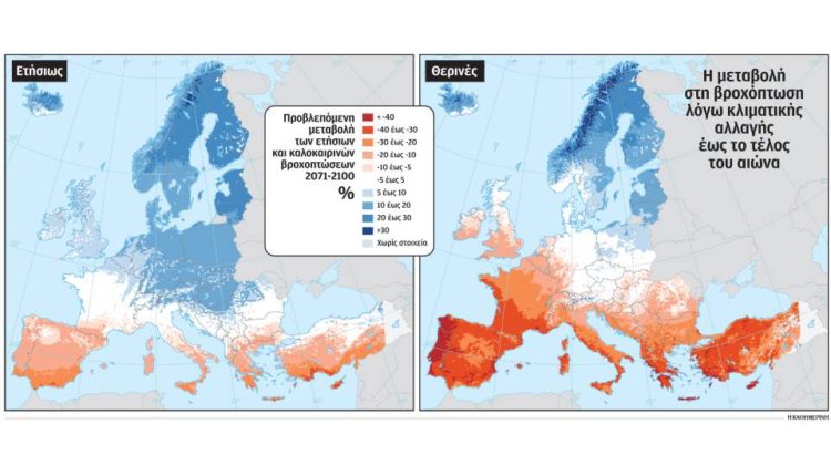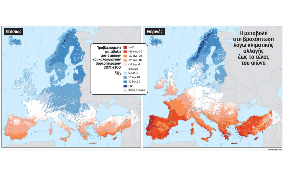 • Η αξία της αγροτικής γης αναμένεται να πέσει σημαντικά τα επόμενα χρόνια στις μεσογειακές χώρες λόγω της αύξησης της θερμοκρασίας και της μείωσης των βροχοπτώσεων.