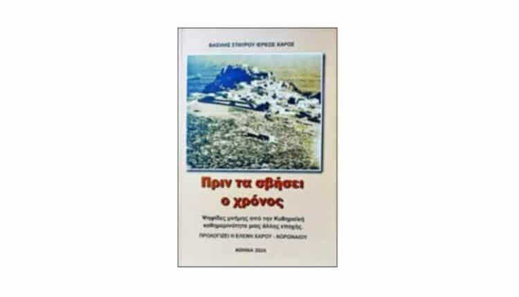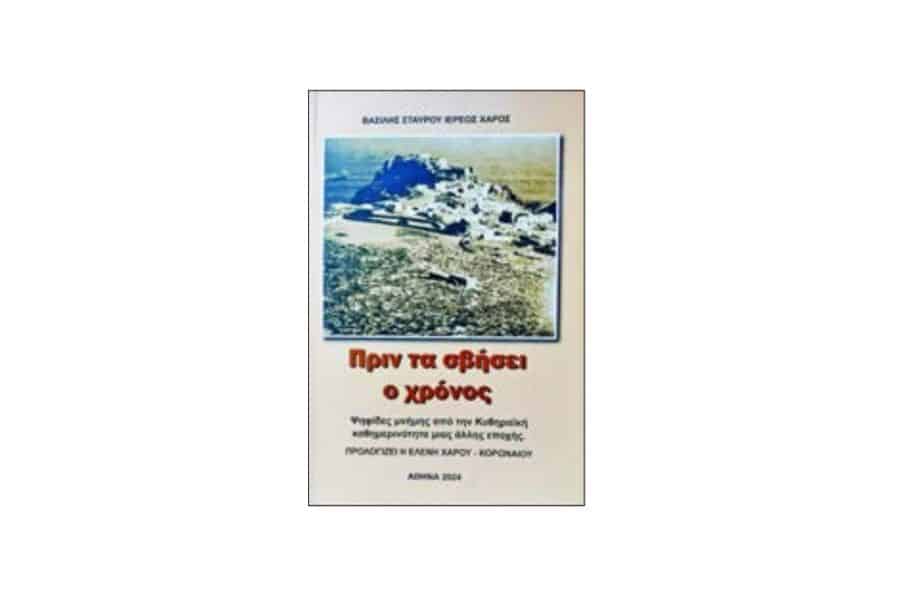 «ΠΡΙΝ ΤΑ ΣΒΗΣΕΙ Ο ΧΡΟΝΟΣ» είναι ο τίτλος του νέου βιβλίου του Βασίλη Σταύρου Ιερέως Χάρου, όπως ο ίδιο ο συγγραφέας το υπογράφει. Ευνόητος ο τίτλος. Δεν πρέπει να ξεχαστεί το παλιό Τσιρίγο, να το σκεπάσει με λησμονιά το καινούργιο που ήρθε και βίαια διώχνει το παλιό. Αυτό το βιβλίο δίνει την ιδανική ευκαιρία να επαναλάβω την έκκληση: Τα εγγόνια να μαγνητοφωνήσουν, τώρα, τους παππούδες τους με τα κινητά τους και να καταγράψουν αυτά που θα τους πουν και που έζησαν. Να τους ρωτήσουν για τους δικούς τους παππούδες και να φυλάξουν τις εγγραφές. Συχνά συναντώ ενήλικες που θεωρούν μεγάλο λάθος τους που δεν ρώτησαν, έγκαιρα, γονείς και παππούδες, για κάποια θέματα που τώρα ψάχνουν και απαντήσεις δεν βρίσκουν. Ο λαός εκείνος που διτηρεί τη μνήμη των προγόνων και τη μεταφέρει στους απογόνους, διαιωνίζεται σε μακρινό μέλλον. Τούτο μας διδάσκει η πολύχρονη ιστορία μας.