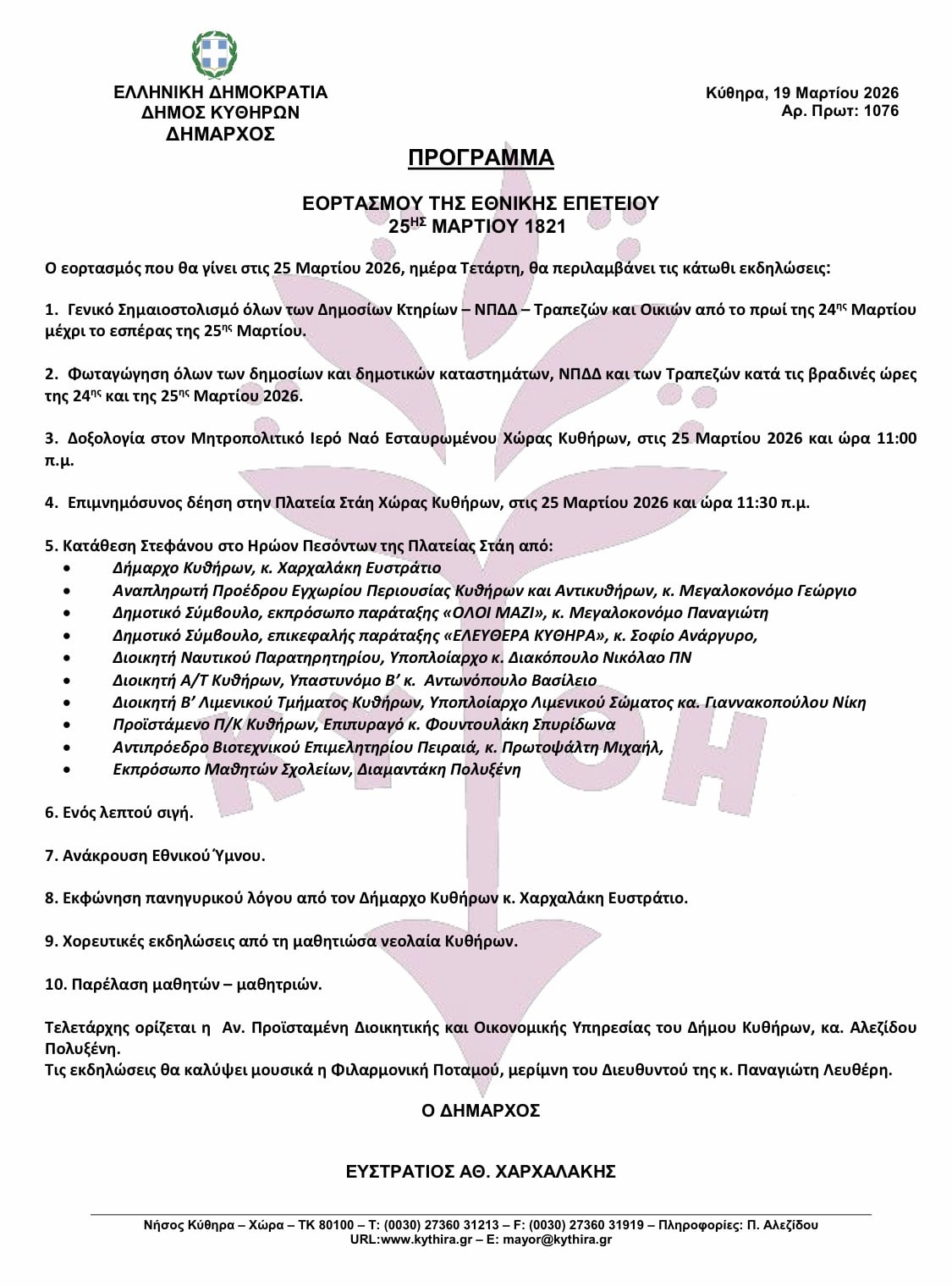 ΓΝ ΚΥ ΚΥΘΗΡΩΝ – ΔΕΛΤΙΟ ΤΥΠΟΥ 1-4-2026