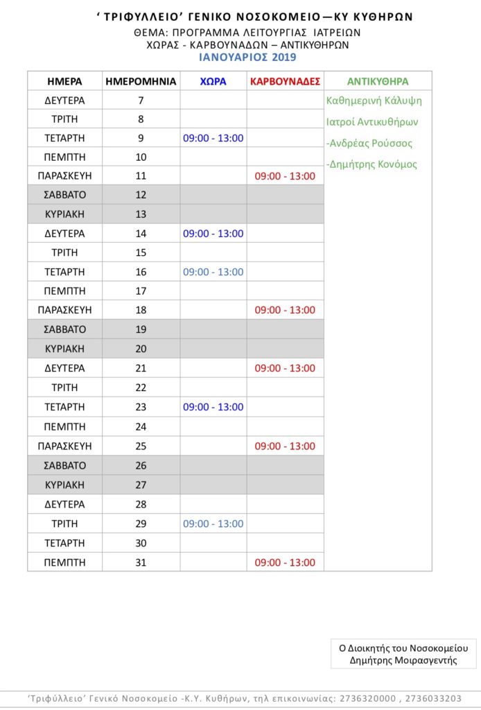 - Πρόγραμμα Λειτουργίας Αγροτικών Ιατρείων Ιανουάριος 2019