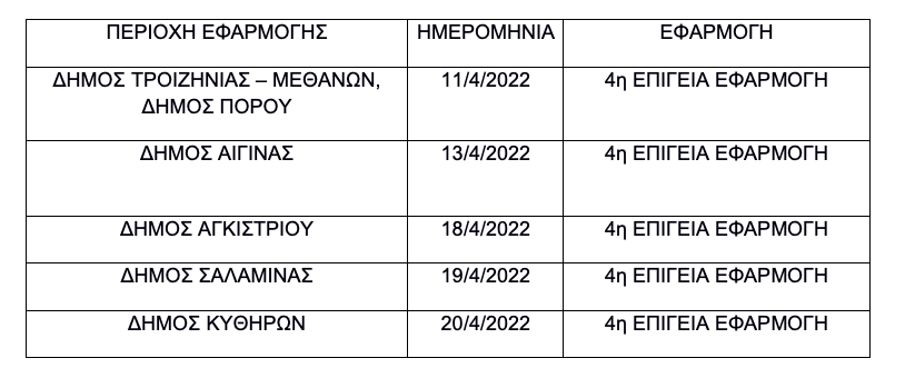 «Προγραμματισμός 4ου κύκλου επίγειων και 2ου κύκλου από αέρος εφαρμογών προνυμφοκτονίας 2022 σε περιοχές χωρικής αρμοδιότητας της Π.Ε. Νήσων Περιφέρειας Αττικής».