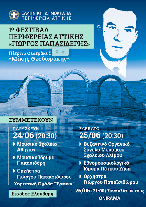 ΠΡΟΣΚΛΗΣΗ: 1ο ΦΕΣΤΙΒΑΛ ΠΕΡΙΦΕΡΕΙΑΣ ΑΤΤΙΚΗΣ “ΓΙΩΡΓΟΣ ΠΑΠΑΣΙΔΕΡΗΣ”