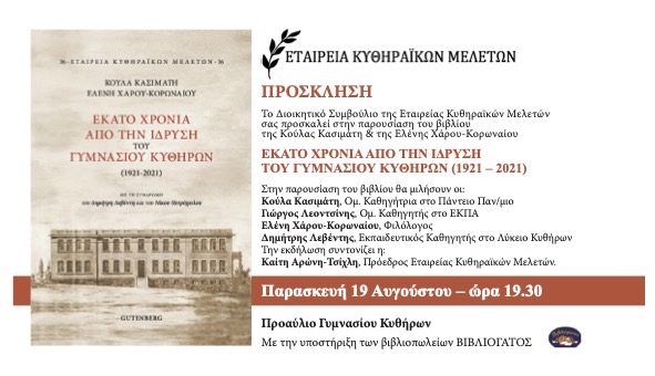 Πρόσκληση σε παρουσίαση νέας έκδοσης από την Εταιρεία Κυθηραϊκών Μελετών