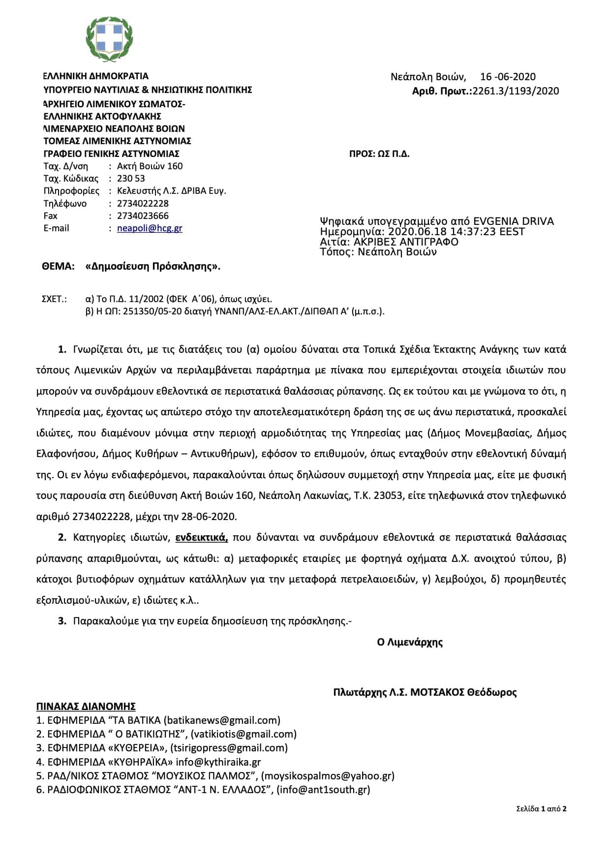 ΓΝ ΚΥ ΚΥΘΗΡΩΝ – ΔΕΛΤΙΟ ΤΥΠΟΥ 1-4-2026