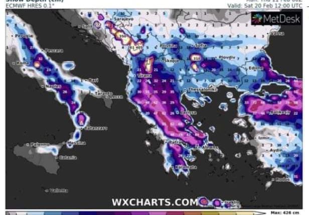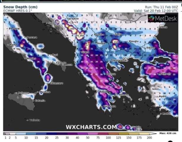 Τρίτη 16 / 02 / 2021 Κλείνοντας εδώ, τα δεδομένα επιμένουν για αξιόλογες χιονοπτώσεις που κατά διαστήματα θα αποκτούν έντονο χαρακτήρα σε Ανατολική Στερεά, Εύβοια, Κυκλάδες, Βόρειο και Ανατολικό Αιγαίο καθώς και την Κρήτη, όμως είναι πολύ μακριά για να υπάρξει ασφαλής πρόγνωση καθώς υπάρχουν ενδείξεις για στασιμότητα του συστήματος μεταξύ Δωδεκανήσων και Κύπρου και εμμονή των φαινομένων μέχρι και την Παρασκευή.