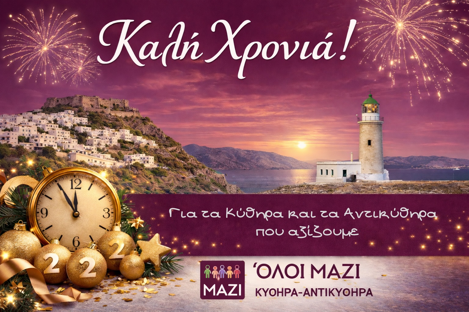 Πρωτοχρονιάτικο μήνυμα της δημοτικής παράταξης «Όλοι Μαζί, Κύθηρα – Αντικύθηρα»