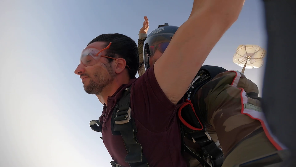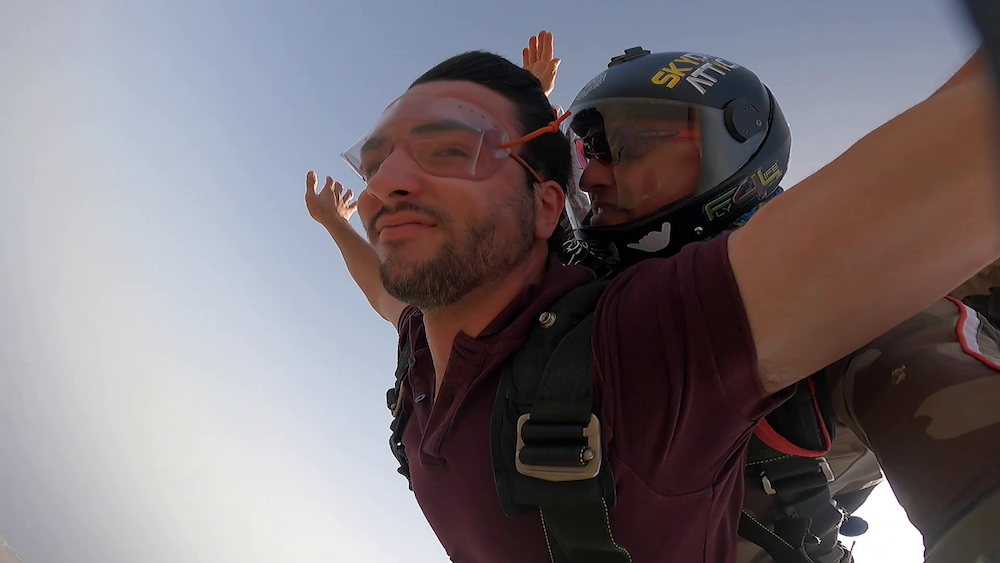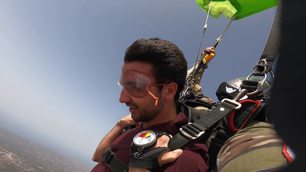 Ένα από τα επτά (7) αεραθλήματα που είχαν την ευκαιρία να απολαύσουν οι πιο τολμηροί και τολμηρές από το πολυπληθές κοινό που συμμετείχε στο ALEXANDER ONASSIS AIR SHOW 21, ήταν η ελεύθερη πτώση με αλεξίπτωτο, στο θεϊκό παλάτι της Ουράνιας Αφροδίτης, τον ουρανό του Τσιρίγου.