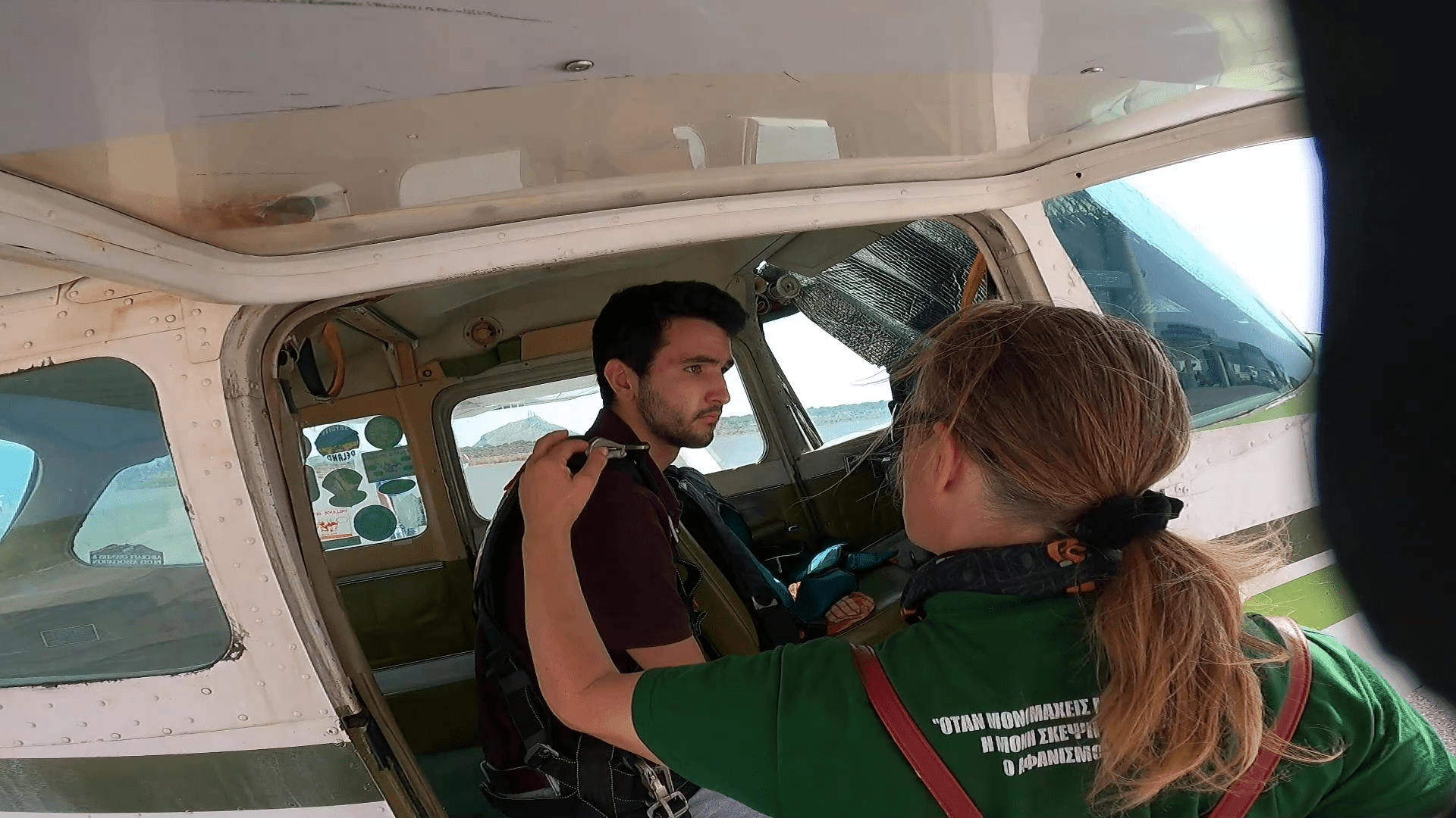 Αφού λοιπόν εξασφάλισα την συγκατάθεση, της θρυλικής Μαρίας Καμπούροβα – Λυκάκη, που είναι πια γνωστή σε όλο το νησί για τα εξαιρετικά δύο άλματά της με την γαλανόλευκη, υπεύθυνη ελεύθερης πτώσης και αντιπρόεδρος της ΕΛ Α Ο (Ελληνικής Αεραθλητικής Ομοσπονδίας), σας κοινοποιώ τις αναμνηστικές φωτογραφίες του αγαπημένου μου ανιψιού Γιάννη Πολύζου, δευτεροετούς φοιτητή μηχανολόγου μηχανικού Ε.Μ.Π., με τις λεζάντες τους, όπου είναι απαραίτητο.