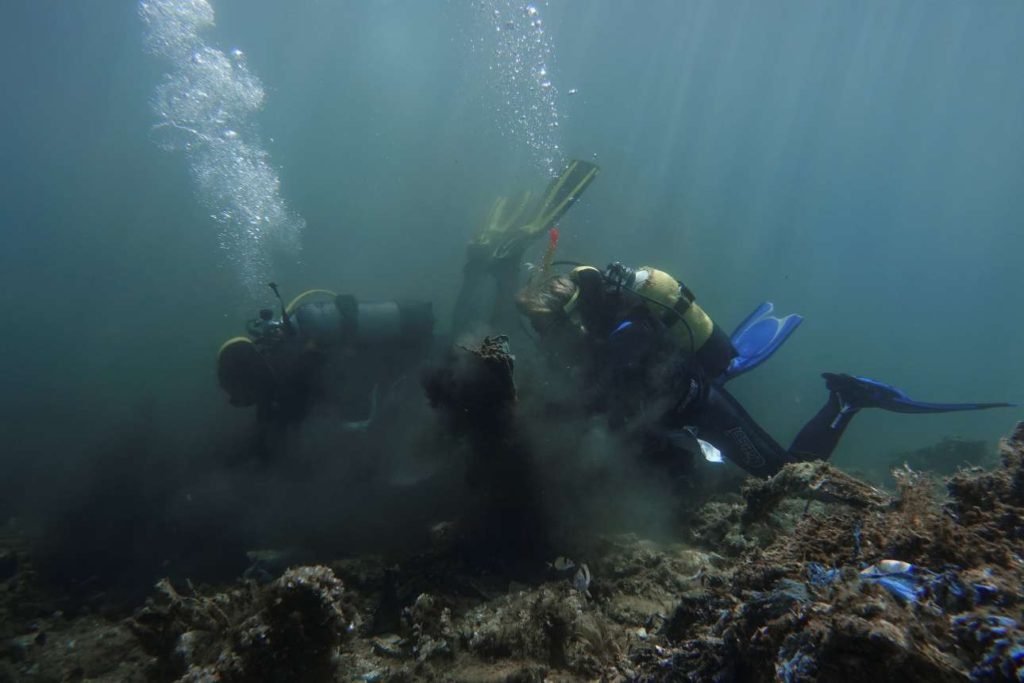 Παρουσία φωτορεπόρτερ από το Reuters, oι δύτες έβγαλαν στη στεριά ό,τι μπορούσαν, αλλά θα επιχειρήσουν πάλι στα μέσα Αυγούστου, καθώς ο όγκος των απορριμάτων είναι, λένε, ασύλληπτος. Ο φακός του Στέλιου Μισίνα βούτηξε μαζί με τους δύτες και κατέγραψε την τιτάνια επιχείρηση καθαρισμού. «Παντού λόφοι από σκουπίδια, οι σακούλες να βγαίνουν σαν κοράλλια μέσα από τις πέτρες. Πολλοί από τους δύτες της ομάδας απογοητεύθηκαν, δεν ξέραμε από πού να ξεκινήσουμε», είπε ο επικεφαλής της ομάδας, Γιώργος Σαρελάκος.