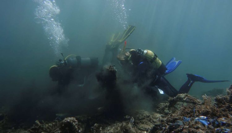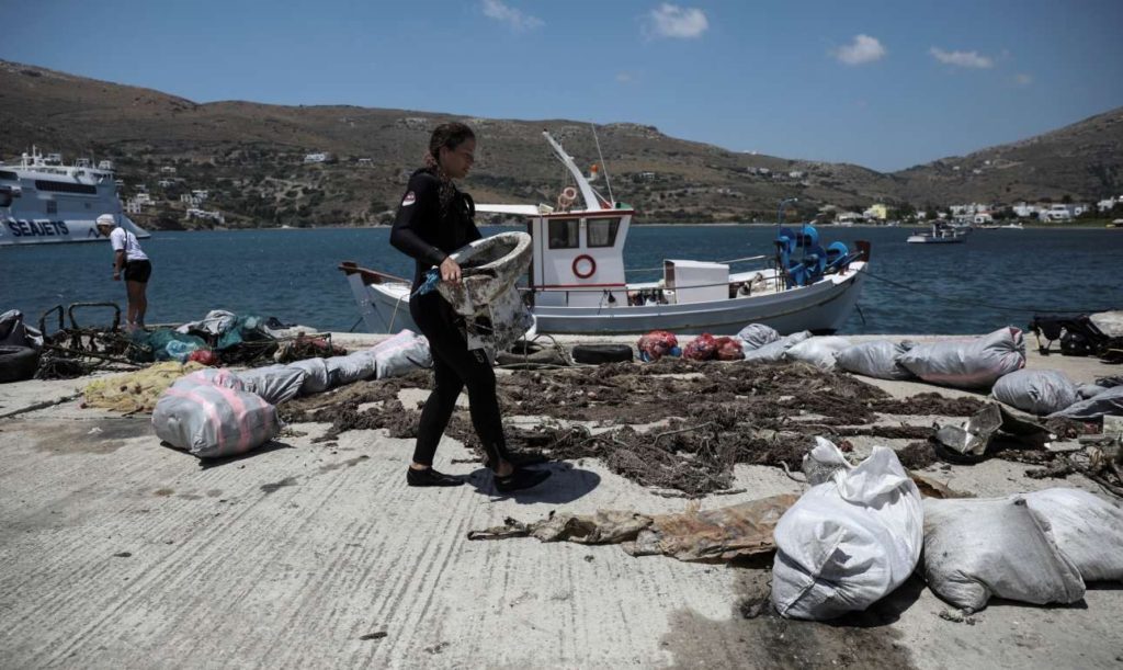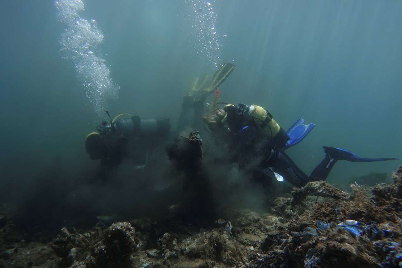 Εθελοντές συγκεντρώνουν τα σκουπίδια που ανέβασαν οι δύτες