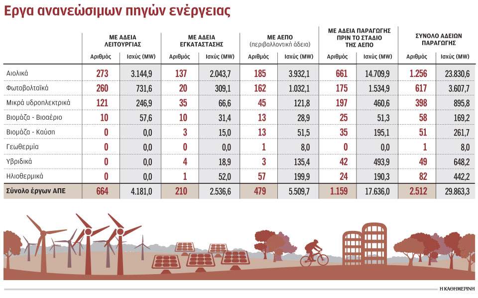 Το υψηλό επενδυτικό ενδιαφέρον αποτυπώθηκε και στον τελευταίο κύκλο αιτήσεων για νέες αδειοδοτήσεις της ΡΑΕ τον περασμένο Δεκέμβριο, όπου υποβλήθηκαν αιτήματα για συνολική ισχύ 15 GW, δυναμικότητα υπερδιπλάσια των αναγκών για νέα έργα το 2030. Αυτή τη στιγμή, συνολικά στη ΡΑΕ εκκρεμούν 1.730 αιτήσεις για 28 GW από ΑΠΕ. Ο πληθωρισμός αδειών προβληματίζει την αγορά, η οποία εκφράζει ανησυχίες για υπερθέρμανση που μπορεί να προκαλέσει τα αντίθετα από τα επιδιωκόμενα αποτελέσματα. Αρκετοί μάλιστα από τους φορείς διαπιστώνουν ότι το νέο πλαίσιο απλούστευσης της αδειοδοτικής διαδικασίας που έθεσε σε δημόσια διαβούλευση το υπουργείο Ενέργειας δεν απαντάει σε αυτό το πρόβλημα. Κάποιοι μάλιστα υποστηρίζουν ότι η αντικατάσταση της άδειας παραγωγής από την έκδοση βεβαίωσης καθιστά πιο εύκολη την είσοδο στην αγορά αεριτζήδων και μεταθέτει τον όγκο της δουλειάς για το ξεσκαρτάρισμα στα επόμενα στάδια της αδειοδοτικής διαδικασίας.