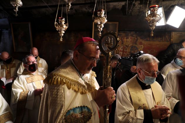 O νεοανακηρυχθείς Λατίνος Πατριάρχης Ιεροσολύμων, Πιερμπατίστα Πιτσαμπάλα, που νόσησε ο ίδιος και ανέρρωσε, ηγείται των φετινών εορτασμών, ωστόσο από τη λειτουργία τα μεσάνυχτα στη Βασιλική της Γεννήσεως απουσίαζε ο 85χρονος Παλαιστίνιος πρόεδρος, Μαχμούντ Αμπάς.