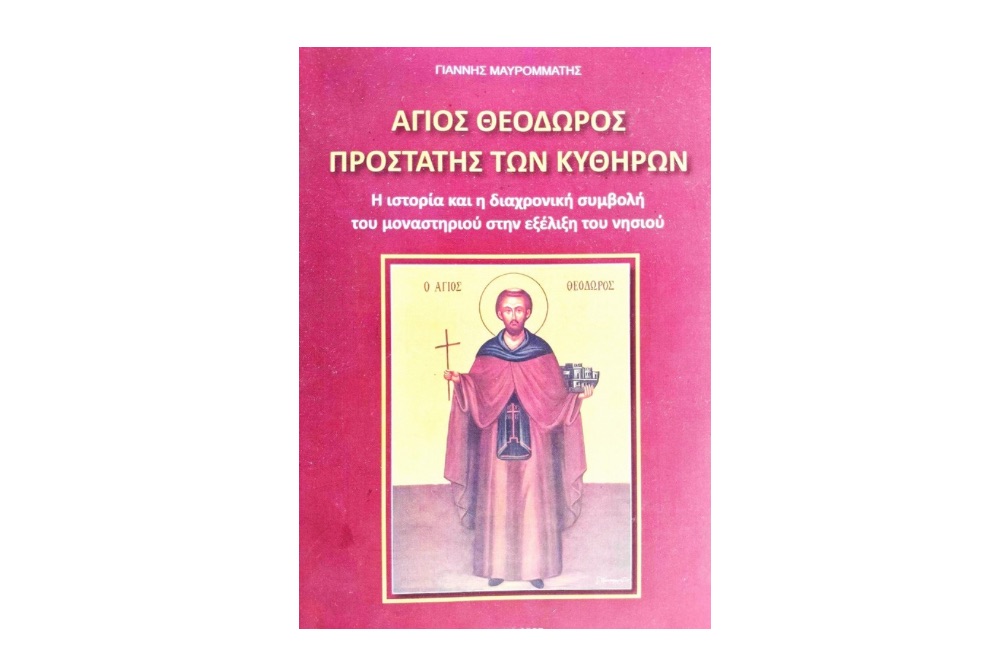 Ο συγγραφέας παραθέτει πολύτιμα στοιχεία της λειτουργίας του σχολείου, μα και των άλλων σχολείων του νησιού, από το 1826 μέχρι το 1859. Γράφοντας για τον Άγιό μας, αναπόφευκτα, εξιστορεί τα τελευταία 1.000 χρόνια του τόπου μας. Ο μεσαίωνας δεν είναι σκοτεινός για τα Κύθηρα. Πολλοί ερευνητές, Κυθήριοι και φιλοκυθήριοι, έχουν φωτίσει με βιβλία και ανακοινώσεις πολλές πτυχές της ιστορίας μας. Ο Γιάννης συνθέτει ενιαίο έργο στηριζόμενος σε έρευνα του, μα και σε έργα πολλών άλλων. Οι εύστοχες παραπομπές και η εκτεταμένη βιβλιογραφία που παραθέτει, καθοδηγούν τους αναζητητές των λεπτομερειών. Αναφέρεται στις επαναστατικές εξάρσεις των προγόνων μας και τους πολιτικούς αγώνες τους, μα και στα νεότερα χρόνια. Γράφει λεπτομερώς για το φυτώριο του Οσίου Θεοδώρου, που συνέβαλε στο πρασίνισμα του νησιού μας. Καταθέτει και προτάσεις για τη διαχρονική ενίσχυση του Προσκυνήματος, κυρίως με τη λειτουργεία Εκκλησιαστικού Μουσείου στο ανακαινισμένο σχολείο. Το βιβλίο τυπώθηκε με χορηγία του κληροδοτήματος Ν. Αρώνη, υπό την αιγίδα του Κυθηραϊκού Συνδέσμου Αθηνών.Διατίθεται στα βιβλιοπωλεία και στον χώρο του Οσίου Θεοδώρου. Οι εισπράξεις αποσκοπούν στην ενίσχυση του Μοναστηριού και στην επίτευξη των στόχων του.