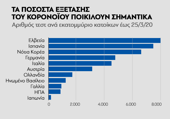 Η διαφορά των δύο χωρών δεν έγκειται στον αριθμό των τεστ αλλά στη μεθοδολογία.
