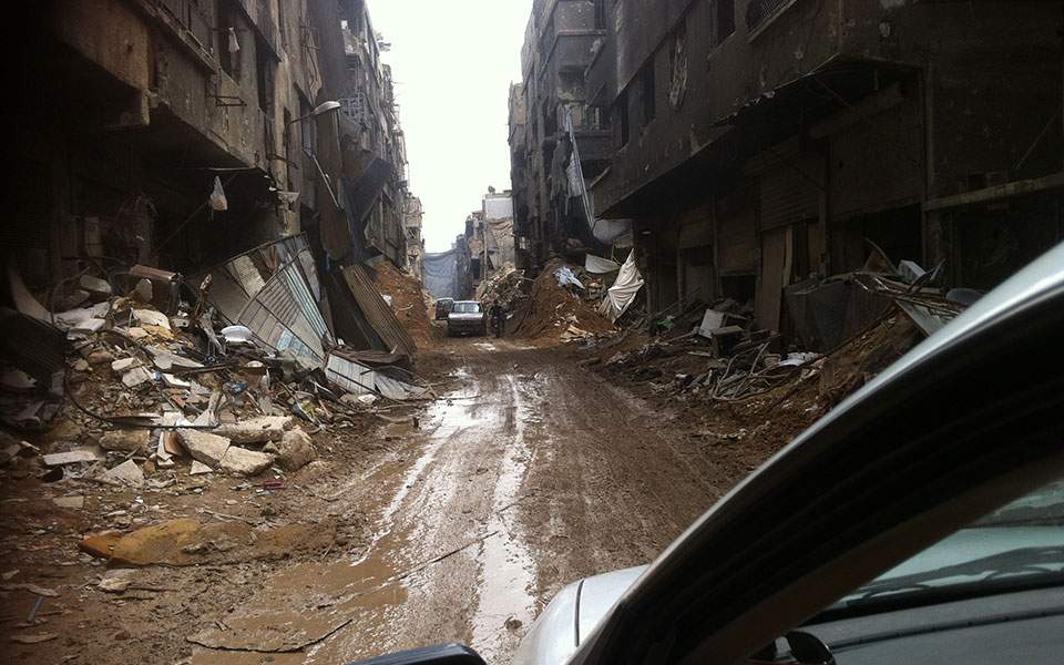 Φτάνοντας στη Δαμασκό, βλέπαμε με τον Πέτρο (Παπακωνσταντίνου) καπνό σε δύο – τρία σημεία. Ο οδηγός εξηγούσε παραστατικά ότι εκεί γίνονταν μάχες. Δεν έμοιαζε να ανησυχεί. Αφού φτάσαμε στο ξενοδοχείο, μας έκανε εντύπωση ότι δεν είχαμε άνθρωπο μαζί μας από κάποια κρατική υπηρεσία και παρ’ όλα αυτά μπορούσαμε να κινηθούμε μόνοι μας. Η παλιά πόλη είναι σαγηνευτική. Μαγαζιά που θα συναντούσε κανείς στην Αθήνα πριν από 60-70 χρόνια, φωνές και μυρωδιές, εικόνες μιας τεταμένης κανονικότητας. Πού και πού περνούσε κάποιο μηχανάκι με δύο ή και τρεις «στρατιώτες» με καλάσνικοφ. Η κίνηση απίστευτη και χαώδης. Πεζοί, ποδήλατα, αυτοκίνητα, τροχονόμοι που συζητάνε με έναν οδηγό στη μέση του πιο κεντρικού δρόμου.