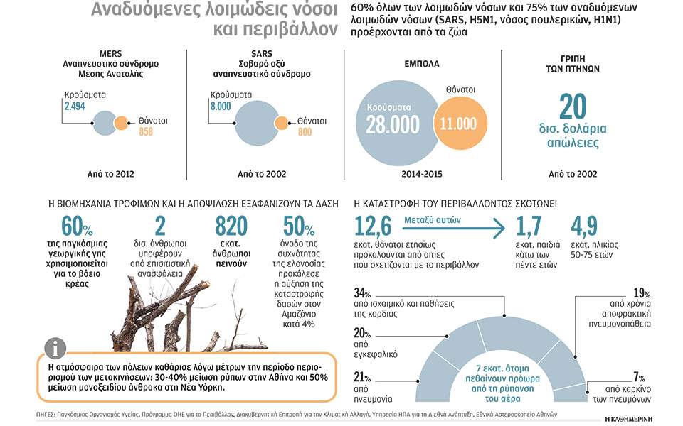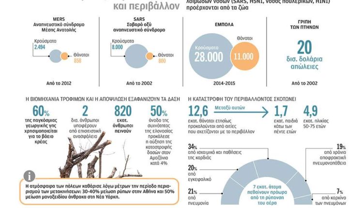 Δεν είναι μόνο οι μολυσματικές ασθένειες· ο Παγκόσμιος Οργανισμός Υγείας θεωρεί πως το 23% των θανάτων παγκοσμίως έχει περιβαλλοντικά αίτια. Τα δύο τρίτα των καρκίνων προέρχονται από περιβαλλοντικές τοξίνες, σημειώνει το Wired.
